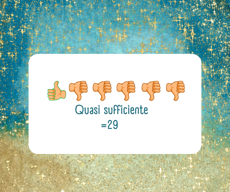Il punteggio di 29 significa che il prodotto non mi convince del tutto ed è un quasi sufficiente.